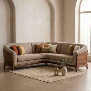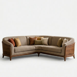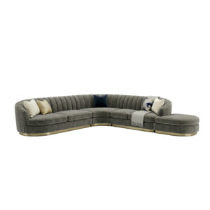 Curvature Grey Velvet Curved Sectional Sofa with Gold Base
