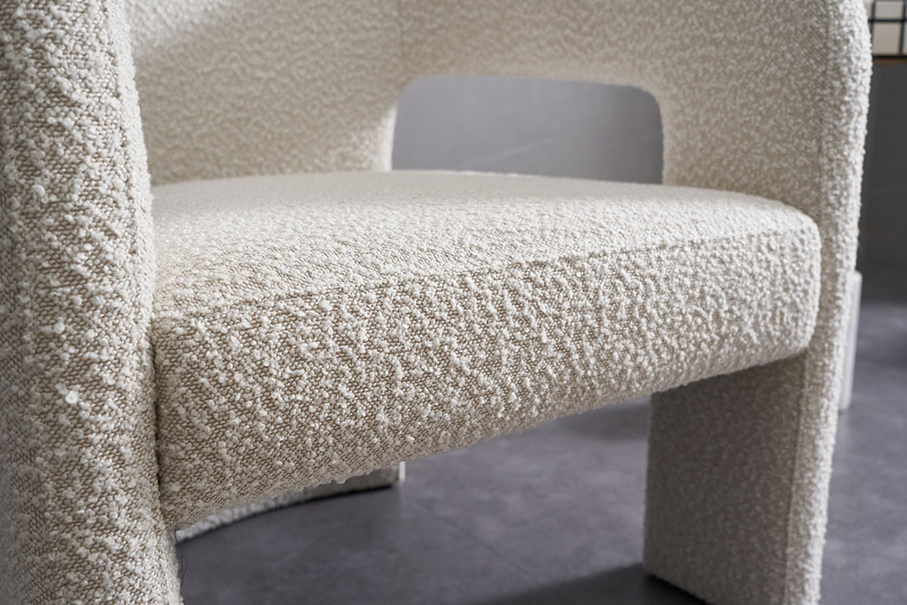 Covered in soft, high-quality boucle fabric for a textured, cozy finish